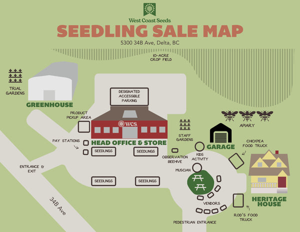 Check out the seedling sale map to locate seedlings, pay stations, artisans, food trucks, and more. Download this digital map to find your way around.